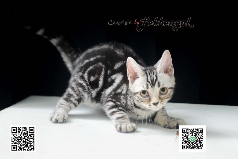 ลูกแมวอเมริกันชอตแฮร์สวยมากๆ สีซิลเวอร์ลายมาเบิ้ลดำเข้ม พันธุ์แท้ เพศเมีย อายุ 3 เดือน วัคซีน 2 เข็มแล้ว